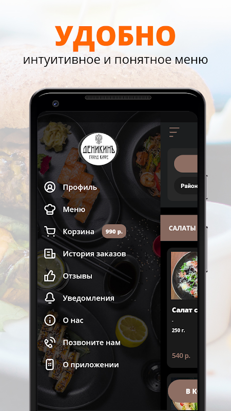 Скачивайте наше приложение, оформляйте заказ и наслаждайтесь любимой едой, где бы Вы ни были! Приятного аппетита!