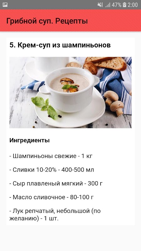 Информация Грибной суп. Рецепты APK