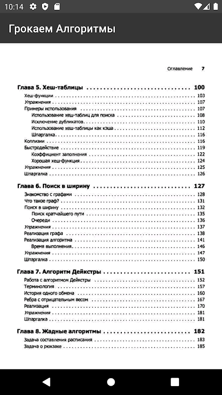 В книге приводится множество примеров. Моя цель — не вывалить на читателя кучу невразумительных формул, а упростить наглядное представление этих концепций. Я также считаю, что мы лучше всего учимся тогда, когда можем вспомнить что-то уже известное, а примеры помогают освежить память. Так, когда вы вспоминаете, чем массивы отличаются от связанных списков (глава 2), просто вспомните, как ищете места для компании в кинотеатре. Наверное, вы уже поняли, что я сторонник визуального стиля обучения, — в книге полно рисунков.