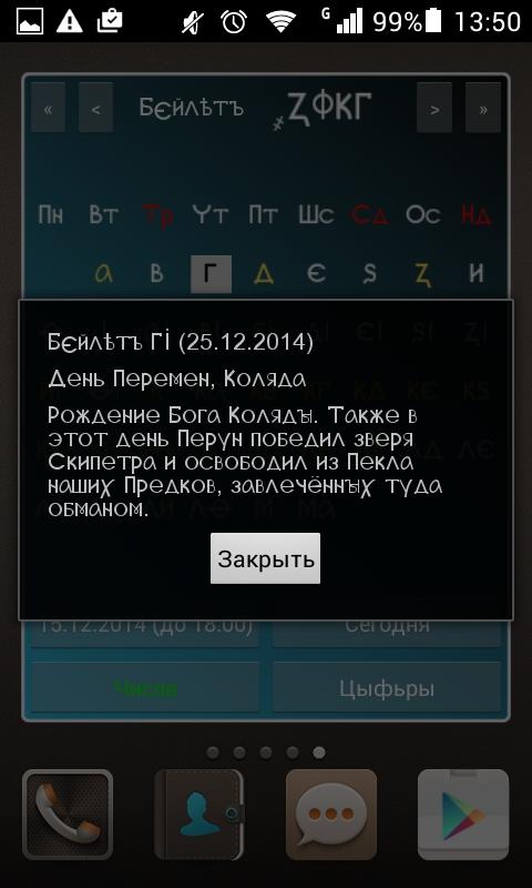 Статус подаваемой информации: неофициальная, требующая проверки. Ничего не определяющая и не утверждающая. Носит ознакомительный характер. Для всех, кто желает приобщиться к древнеславянскому наследию, это приложение явит много нового, но удостоверять себя в истинности чего-либо - дело самостоятельное и личный выбор каждого. Информация о праздниках была поведана сибирскими староверами и может отличаться от дат и названий, существующих в центральной части России.