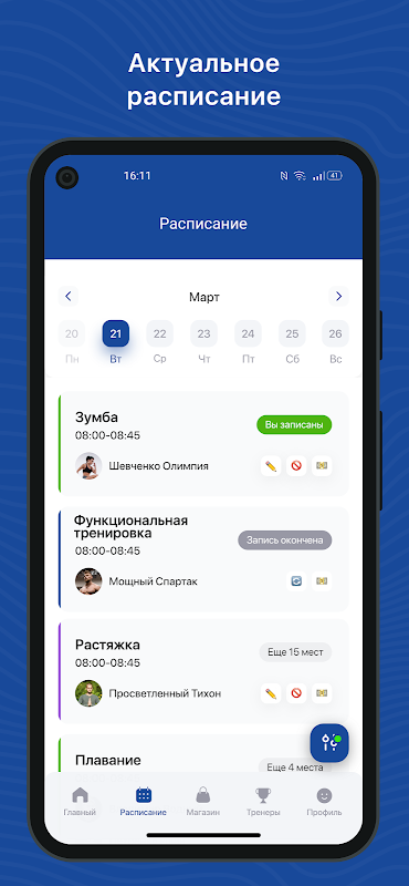 Мобильное приложение для клиентов фитнес-клубов и спортивных студий