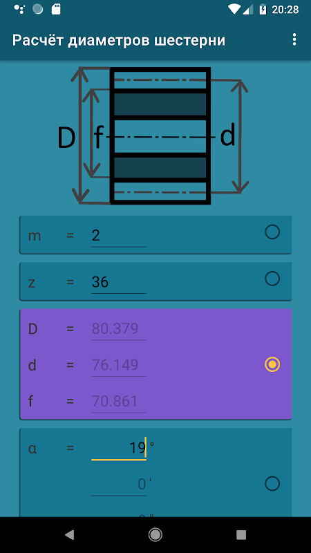 Приложения для упрощённого расчёта диаметров модульных шестерен.