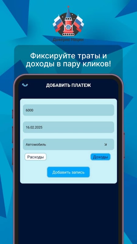 Доверие Нации – это удобный инструмент для контроля личных финансов. В приложении можно легко фиксировать доходы и расходы, распределять их по категориям и отслеживать общий баланс. Добавляйте новые категории, управляйте своими записями и следите за последними транзакциями. Простой интерфейс и интуитивное управление делают процесс учёта быстрым и удобным. Настройки позволяют в любой момент очистить данные. Доверие Нации поможет вам лучше управлять своими финансами и контролировать траты без лишних сложностей!