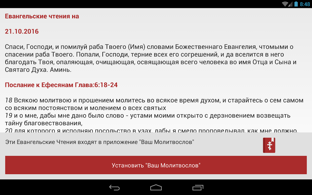 Православное приложение с Евангельскими и Апостольскими чтениями на каждый день