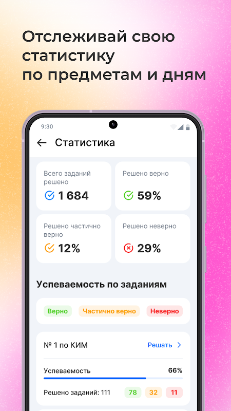 - Статистика прогресса: Следите за своим прогрессом и улучшайте свои результаты благодаря подробной статистике по дням и предметам.