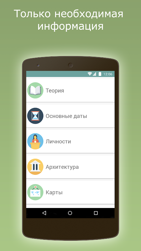Структурированная теория по истории, основные даты, мирные договоры, личности, архитектура, карты, таблицы по истории, готовые сочинения по временным промежуткам, термины для ЕГЭ - это и многое другое в нашем приложении!