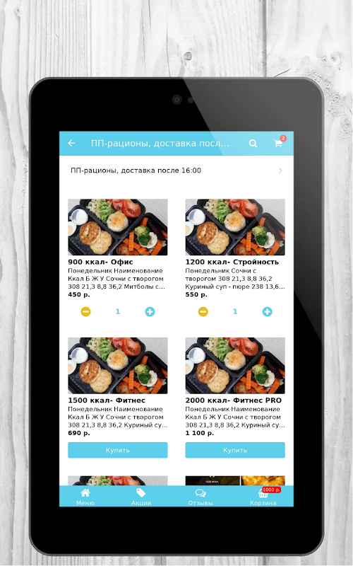 В приложении «ЗдравоВарня» вы сможете заказать: корпоративное питание; правильное питание; detox (программа оздоровления); питание по основному меню; фуршетные наборы. Мы быстро доставим ваш заказ на дом и в офис. При заказе через приложение действуют скидки!
