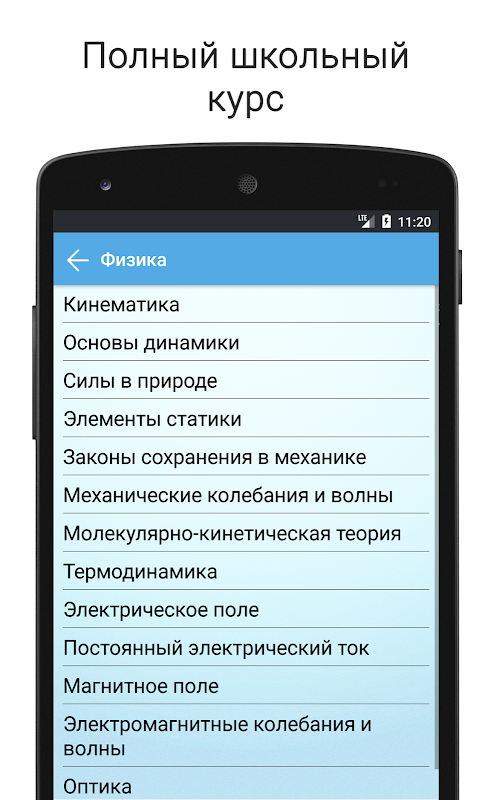 В приложении содержатся все темы школьной физики для подготовки к ЕГЭ и ОГЭ с нуля в виде статей, содержащих справочник, определения, формулы и подробные иллюстрации к ним. Приложение может работать в режиме оффлайн.