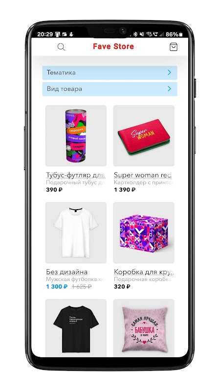 👕🛍️ Вас приветствует FaveStore - ваш ультрасовременный интернет магазин одежды, где стиль встречается с креативностью! Наше приложение - это место, где вы найдете уникальную одежду с принтами для каждого случая. От футболок с забавными надписями до толстовок с эксклюзивными рисунками, FaveStore предлагает широкий ассортимент женской и мужской одежды, которая подчеркнет вашу индивидуальность и добавит яркие краски в повседневный гардероб.