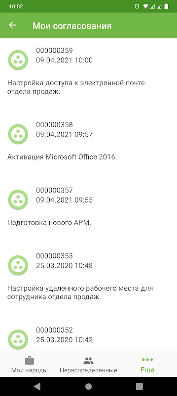 Управление нарядами — просматривайте, изменяйте, завершайте задачи.