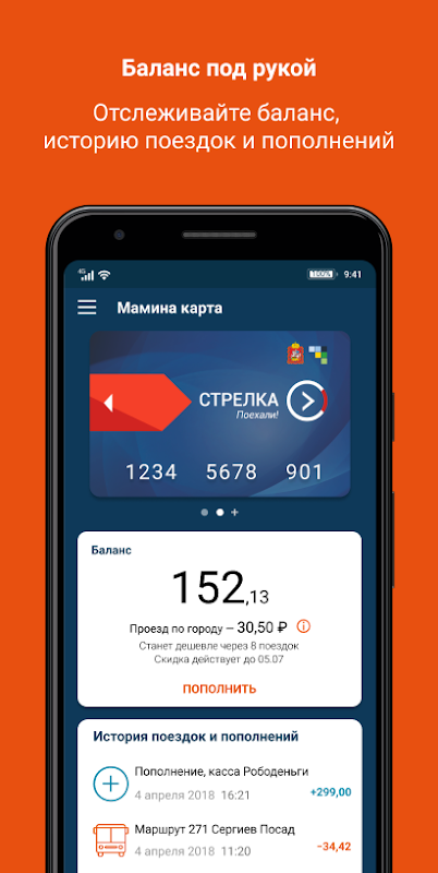 Вы сможете узнать баланс карты и посмотреть историю всех операций: поездок и пополнений.