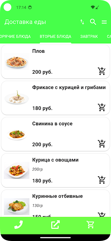 Приложение для заказа еды с доставкой на дом и в офис. В ассортименте первые и вторые блюда, десерты, салаты, выпечка. Доставка бесплатная.