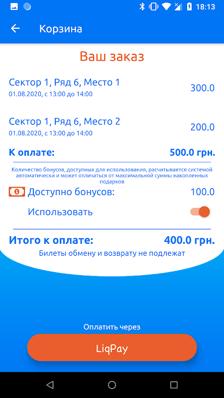 Приложение для покупки электронных билетов в Коблевский Дельфинарий.