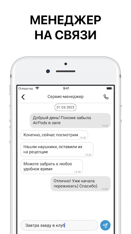 - мгновенная связь с администратором клуба