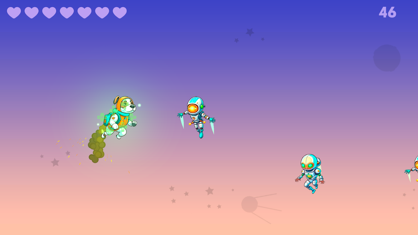 Срочно помоги псу-космонавту спасти подругу Стрелку из лап коварных пришельцев!