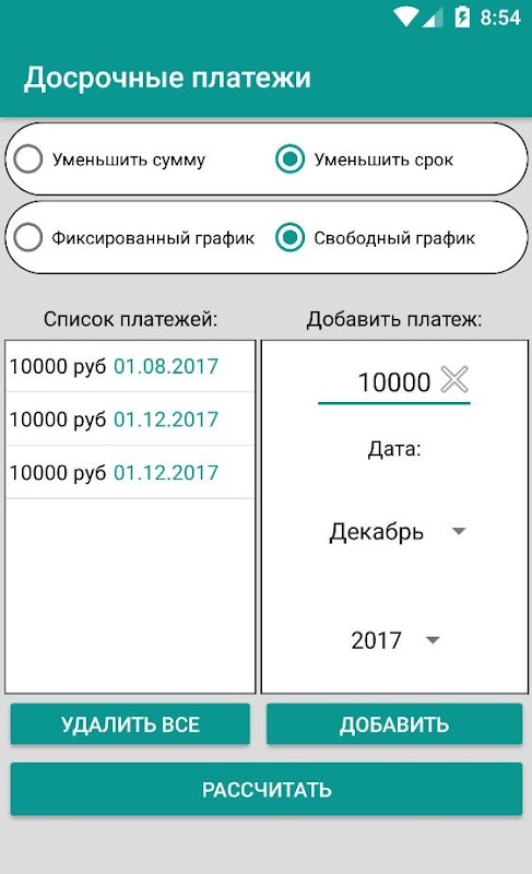 - Посмотреть график платежей по месяцам.