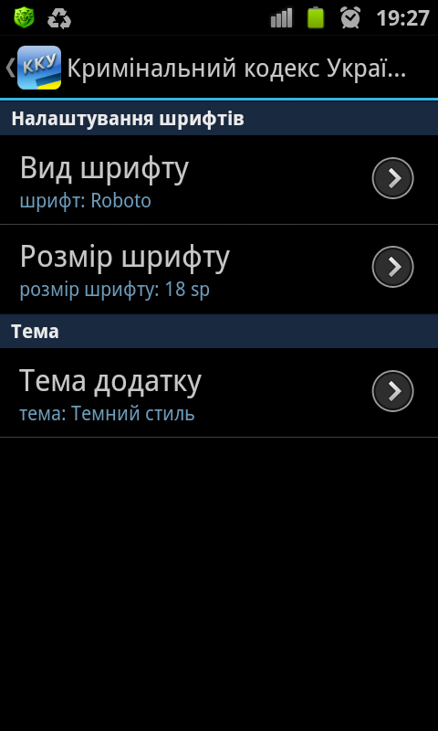3 . Различные настройки - вы можете изменить шрифт и тему приложения.