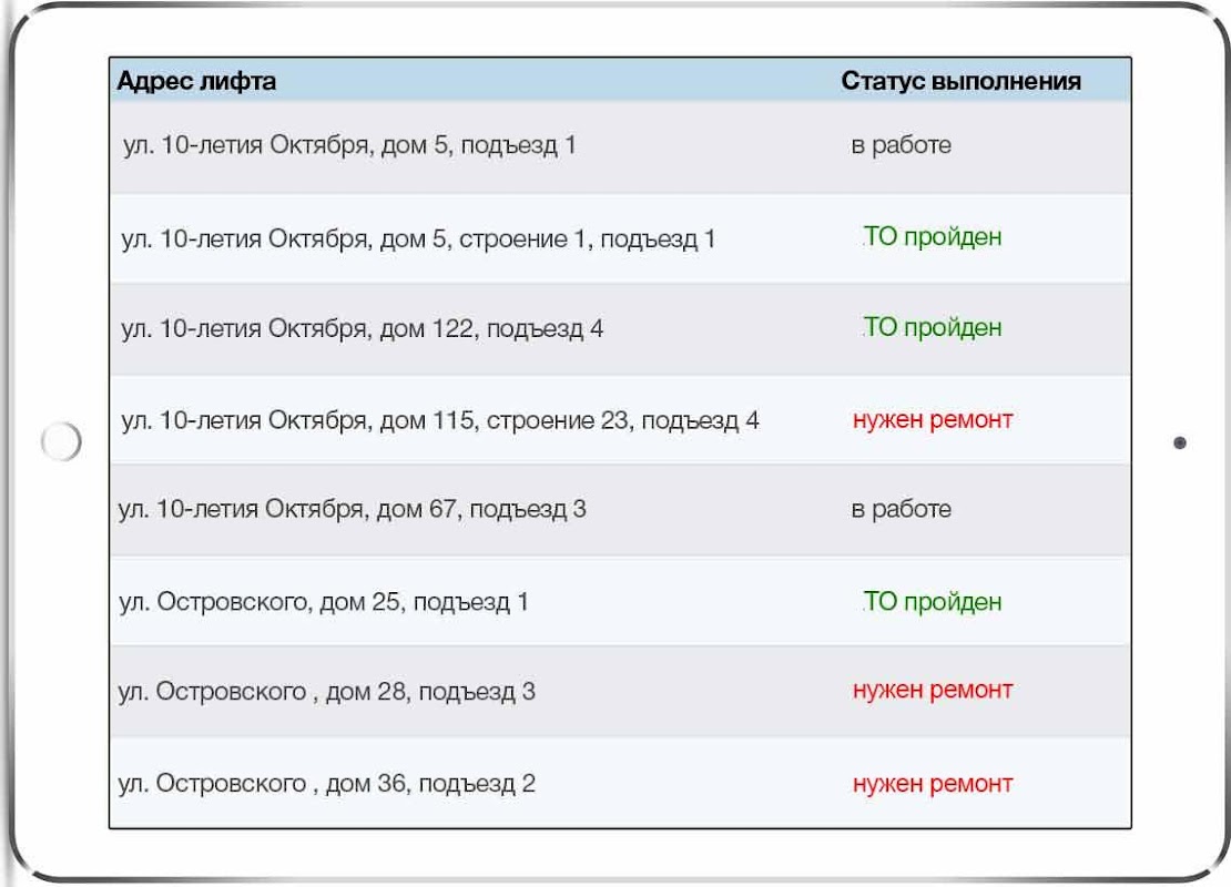 Программа онлайн контроля и учета технического обслуживания и ремонта лифтов