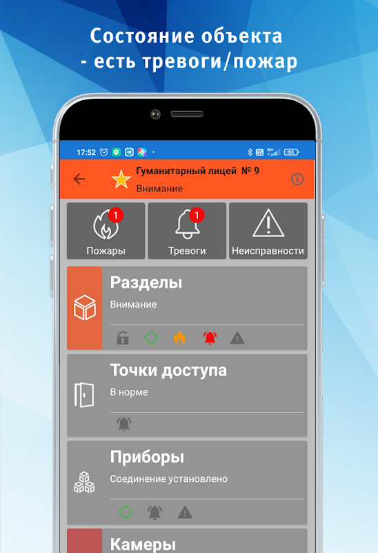 • Получения тревожных оповещений на заблокированном экране с использованием push уведомлений;