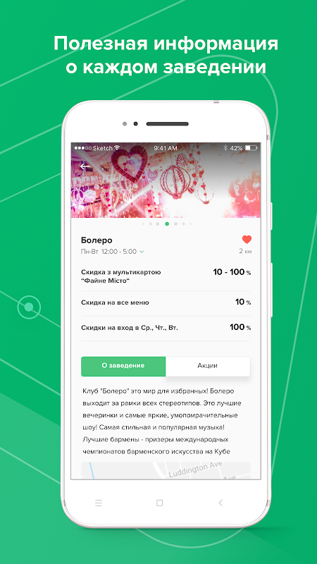 Любимый город - всеукраинская дисконтно-бонусная сеть. Здесь тысячи заведений и организаций предоставляют скидки и бонусы. Находите нужные товары и услуги, смотрите фото, время работы и описание, прокладывайте маршрут и звоните прямо из приложения. Смотрите новости и события своего города. Скачивайте приложение Любимый город и присоединяйтесь к самой динамичной дисконтно-бонусной сети Украины!