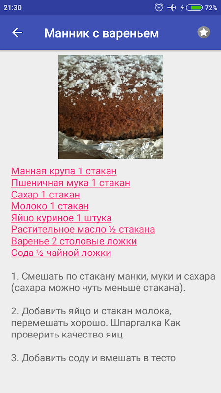 Классический рецепт пирога манника — это манник на кефире. Его также можно приготовить со сливками, сметаной или молоком. Манник хорош тем, что вы можете не использовать муку и яйца, которые могут быть аллергеном. Процесс приготовления манника настолько простой, что можно быть всегда уверенным во вкусном результате. В пирог часто добавляют фрукты: свежие или сушеные, в виде цукатов. Обычно манник готовят с яблоками, шоколадом, бананами, клубникой, вишней, овсянкой, морковью — начинок множество. А еще манный пирог очень популярен среди тех, кто поддерживает диету: манная крупа хорошо разваривается, и содержание клетчатки в ней не превышает 2%, что хорошо подходит для диетического питания.
