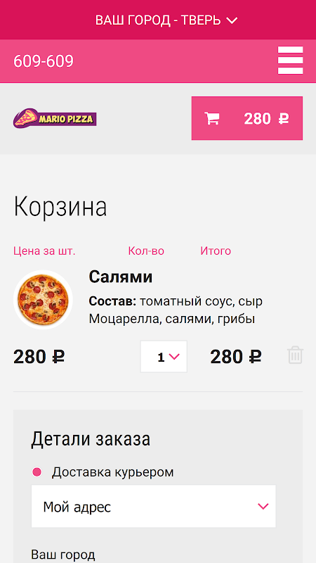 Мобильное приложение для заказа доставки еды из пиццерии Mario Pizza