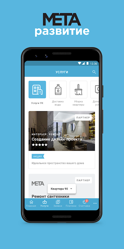 Сервис «УК МЕТА РАЗВИТИЕ» – самый простой и удобный способ взаимодействовать с управляющей компанией, оплачивать квитанции и контролировать свои расходы.