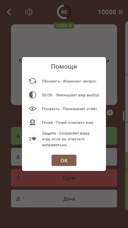 Вы можете извлечь выгоду из помощи. Викторина предоставляет 5 разных подсказок: