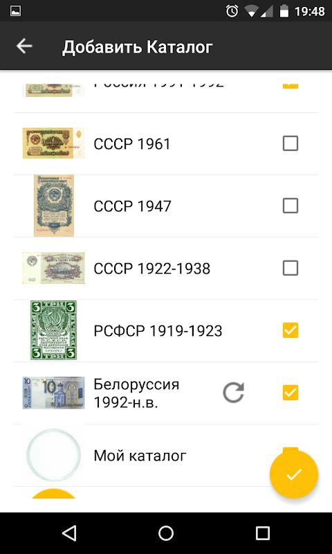 Приложение уже содержит каталоги банкнот России, СССР. Однако основная особенность — все каталоги создаются и обновляются самими пользователями. Вы сами можете: