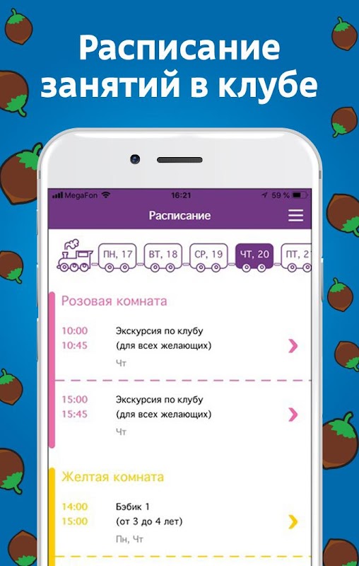Кроме того, актуальное расписание вашего Бэби-клуба теперь будет у вас всегда под рукой. И вы не пропустите ни одного интересного мероприятия.