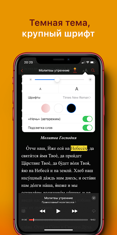 ・ Читаемый текст подсвечивается — возможность слушать и читать одновременно, понимая слова и смысл богослужебных материалов;