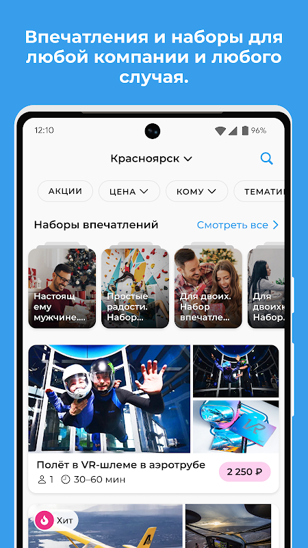 За каждую покупку в приложении будет начислен кэшбэк, который вы можете потратить на свои впечатления!