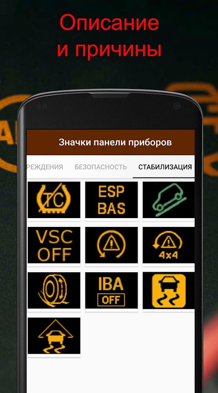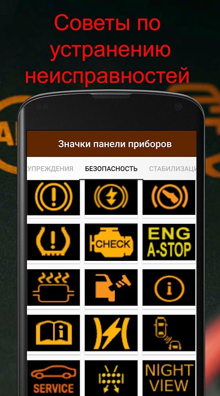 Здесь описание каждой индикации неисправности автомобилей на панели приборов.