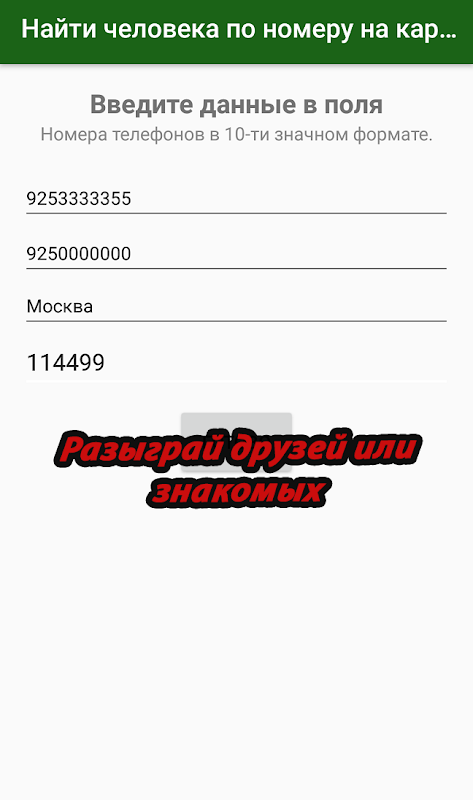 Приложение имитирует поиск человека по номеру мобильного телефона ради розыгрыша