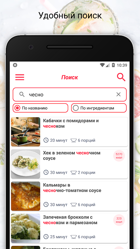 Реализован удобный поиск по названию и по ингредиентам, который позволяет быстро находить интересующий рецепт а также подобрать по ингредиентам.