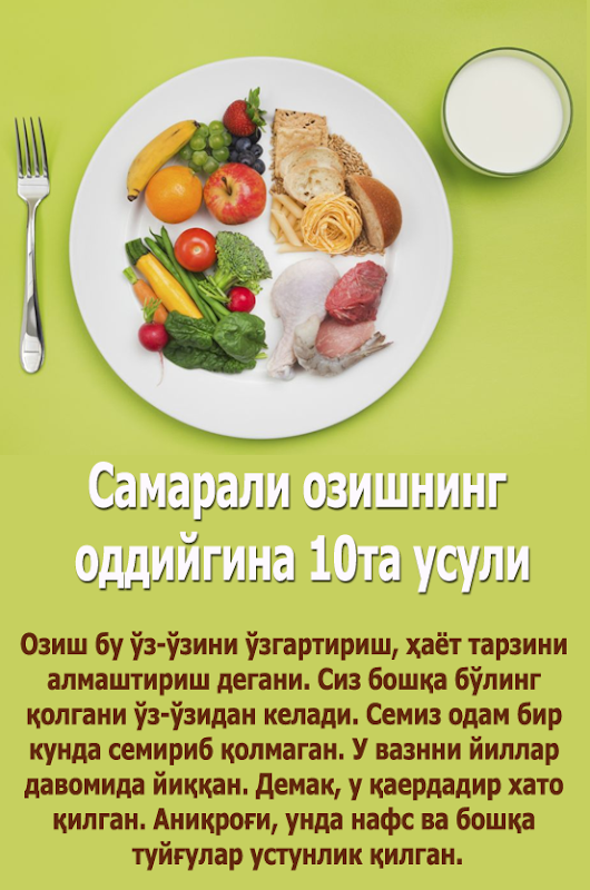 Похудение с умом. Самарали озишнинг 10та оддий усули. Озиш, парҳез, фитнес