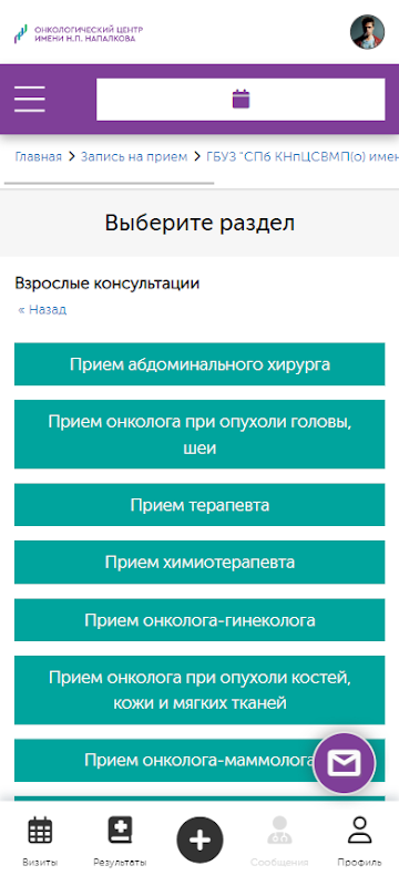 Личный кабинет пациента Онкоцентра им. Н.П. Напалкова