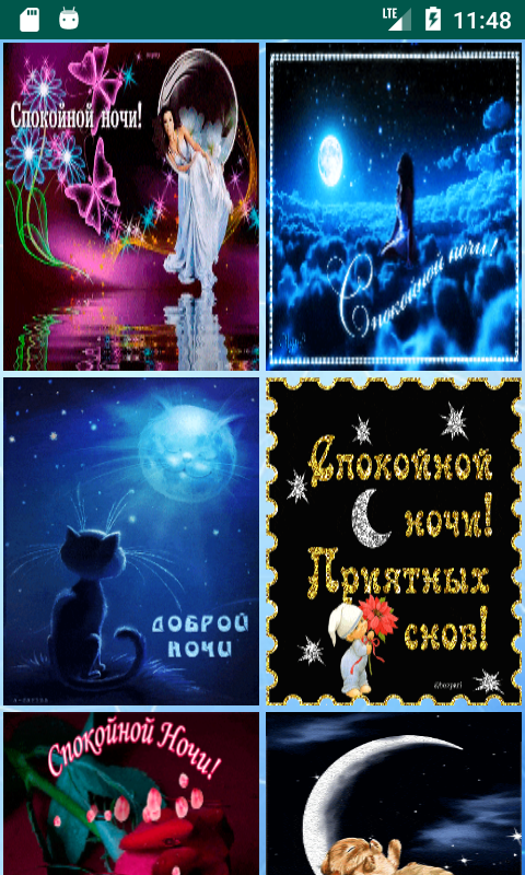 Ищете красивые открытки и анимации на каждый день? Наше приложение — это более 250 ярких и уникальных gif-открыток: доброе утро, спокойной ночи, хорошего дня и вечера, а также поздравления ко многим праздникам! Удивите своих близких, друзей и коллег необычной gif-открыткой прямо с телефона или планшета. Дарите позитив, улыбки и хорошее настроение — бесплатно и без ограничений!