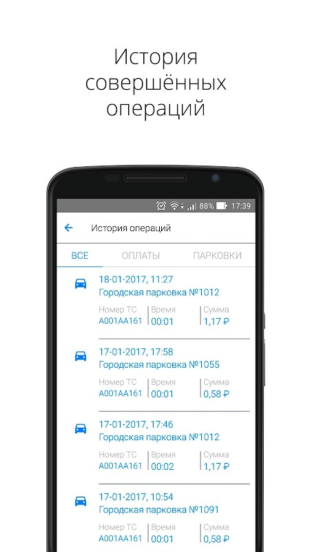 Приложение с лёгкостью поможет найти и оплатить ближайшую свободную парковку на нужный Вам период времени.