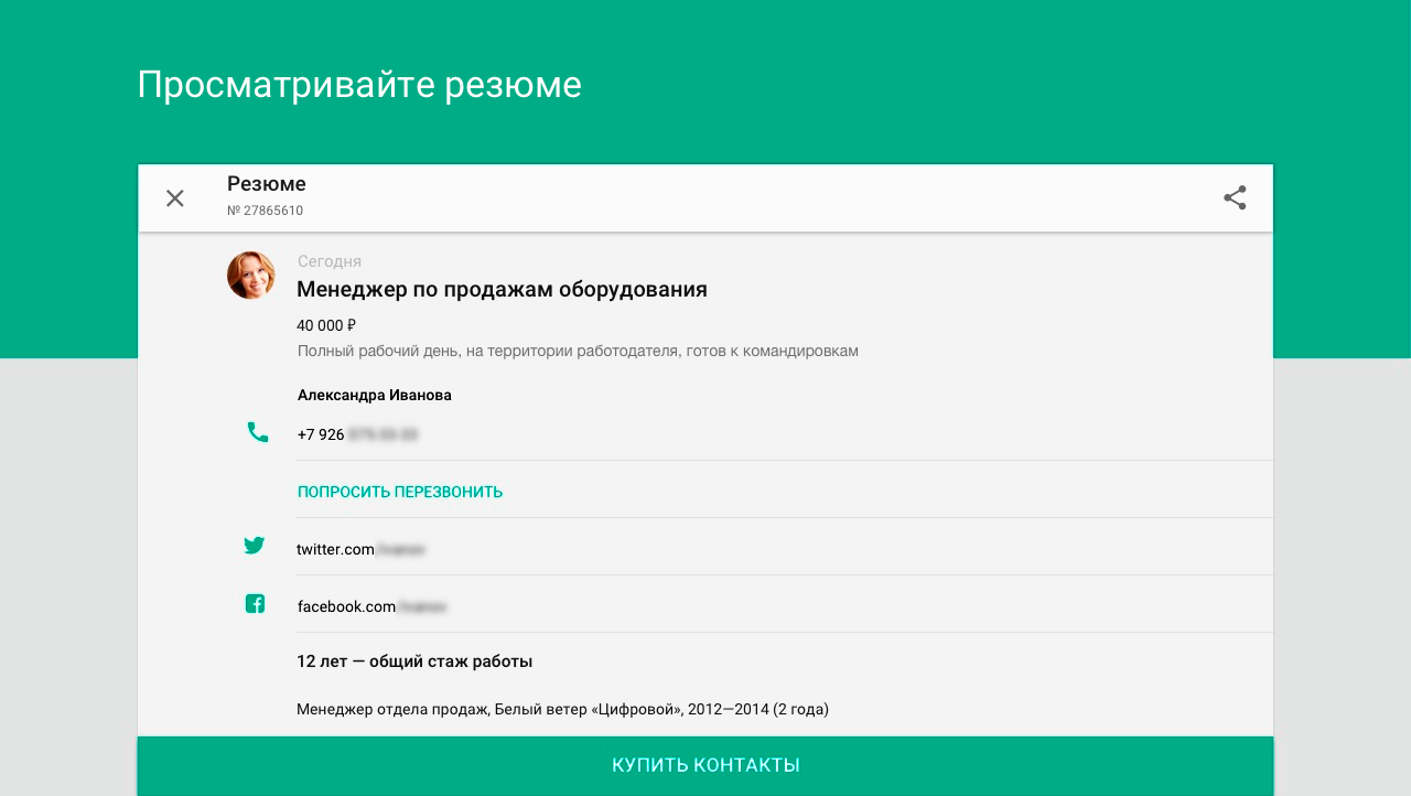 Поиск и подбор персонала: 30 000 000 резюме в вашем смартфоне.