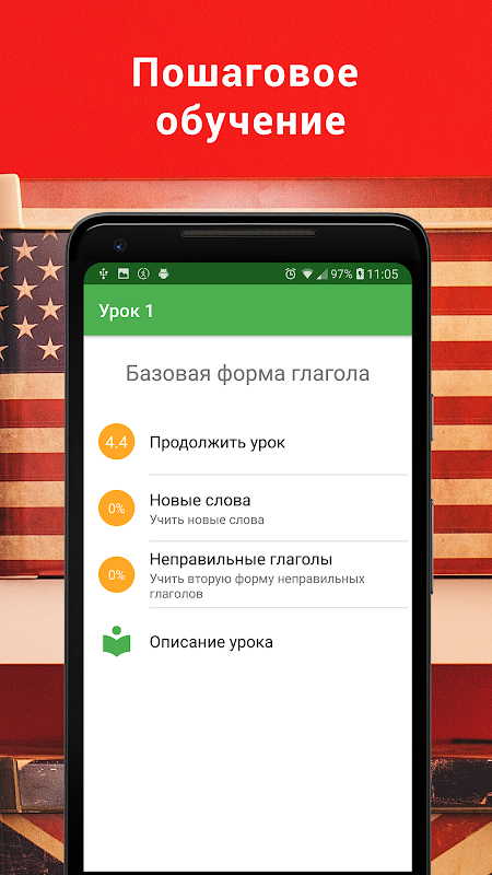 Начните с простейших глаголов и предложений. Узнайте новые слова и закрепляйте новые правила каждый день.