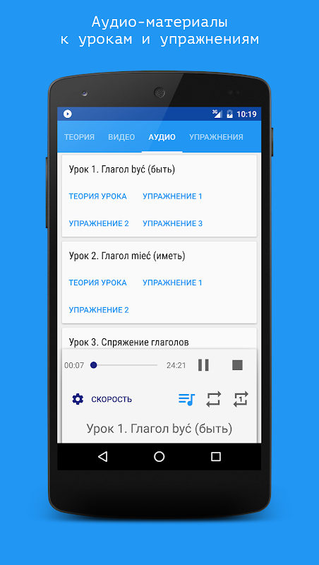 - аудио-материалы с объяснениями уроков и упражнений
