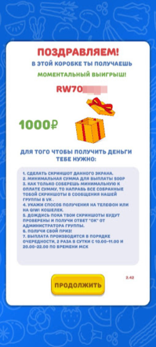 Увеличь свой заработок на наших играх - лови бонусные коробки, в которых, среди прочих бонусов есть дополнительные окна с деньгами. Собери скриншоты окон с бонусными деньгами на минимальную сумму для выплаты на карту 1000р, пришли все собранные скриншоты в сообщения группы Vk и получи выплату на свою карту или телефон. Бонусные коробки доступны только на сайте игры, кнопка для игры в web версию с бонусными коробками есть в меню приложения.