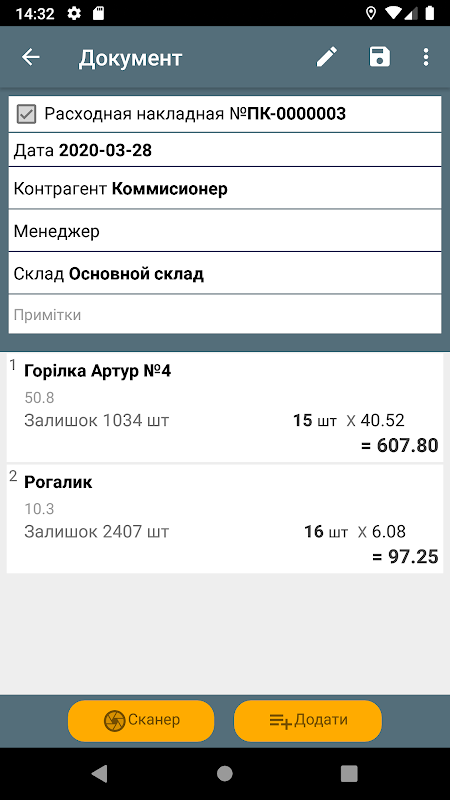 • Удобный доступ к документам – просматривайте, создавайте и редактируйте накладные, инвентаризационные списки, доходные и расходные документы.