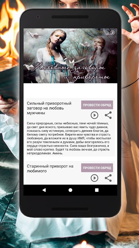 Скачайте и установите бесплатно приложение, и в том, что касается любовных отношений, заговоры на все случаи жизни, будут у вас всегда под рукой.