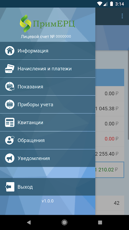 С его помощью абонент может управлять несколькими лицевыми счетами, передавать показания приборов учета, проверять начисления, просматривать историю переданных показаний и историю платежей. Кроме того, через мобильное приложение можно получить справочную информацию по поставщикам услуг, узнать адреса офисов расчетного центра и в случае необходимости связаться с разработчиком приложения.