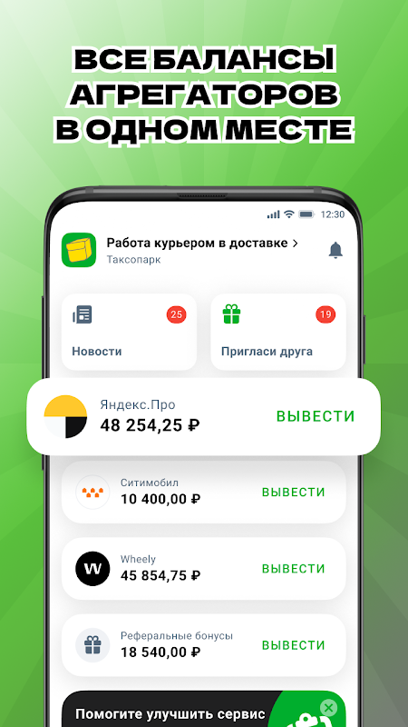 Кроме регистрации в парке с помощью нашего приложения также производится вывод денег с баланса Доставки