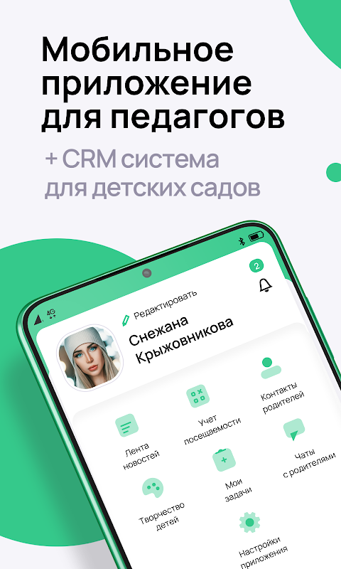 «Растём вместе для педагогов» - IT решение в сфере образования (садики, школы, секции спортивного и творческого направления). Миссия проекта — сделать удобным и современным взаимодействие детских учреждений и родителей в одном сервисе.