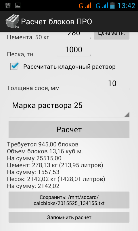 Информация Расчет строительных блоков ПРО APK