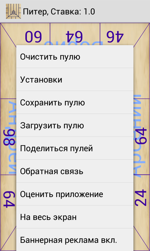 разницу между пулей игрока и оговоренной величиной пули (для Сочи как есть (1 очко в пуле равно 1 очку в горе), для Питера разницу умножаем на 2 (1 очко в пуле равно 2 очкам в горе)) записываем (прибавляем) или списываем (вычитаем) с горы; после этого значения пули в дальнейших расчётах не участвуют.